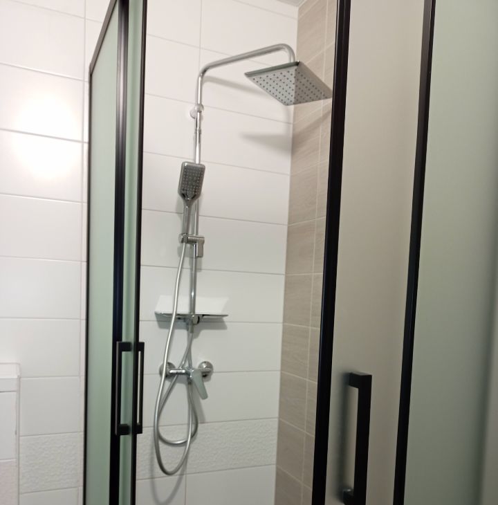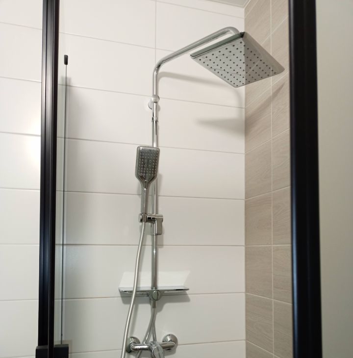 • В ванной комнате выполнен качественный ремонт, установлен "теплый пол", заменена штатная сантехника : установлена инсталляция Roca, душевая кабина с тропическим душем, сушилка.