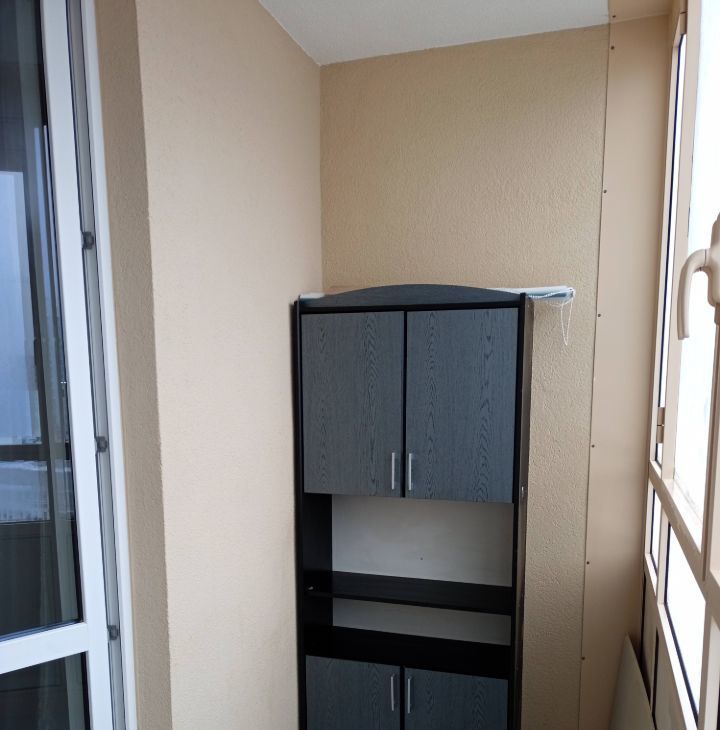 • На окнах стеклопакеты. Большая остекленная лоджия со шкафами для хранения.