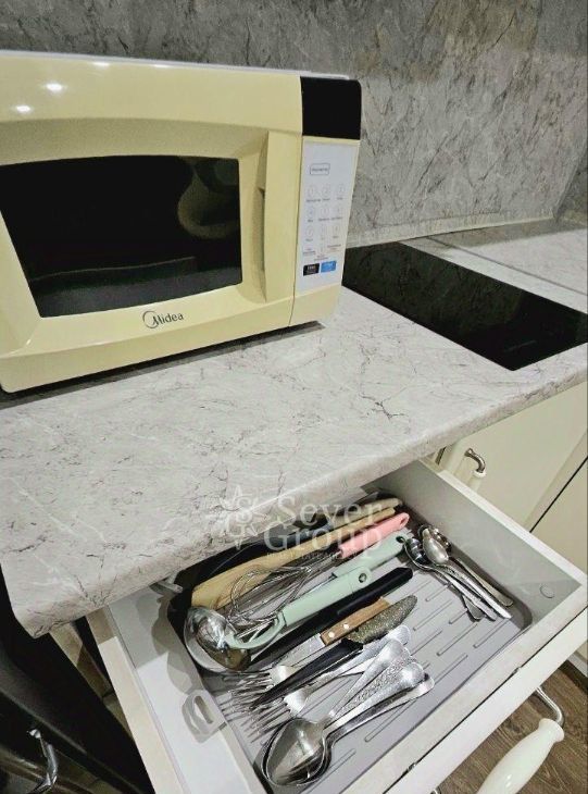 Студия очень чистая, ухоженная и уютная. Сделан свежий ремонт. Никогда не сдавалась. Спальное место, мебель и кухня - отличного качества, так как все делалось под себя. Хорошо укомплектована: ТВ, холодильник, микроволновка, стиральная машина, пылесос, посуда. Прекрасные соседи, шума нет.