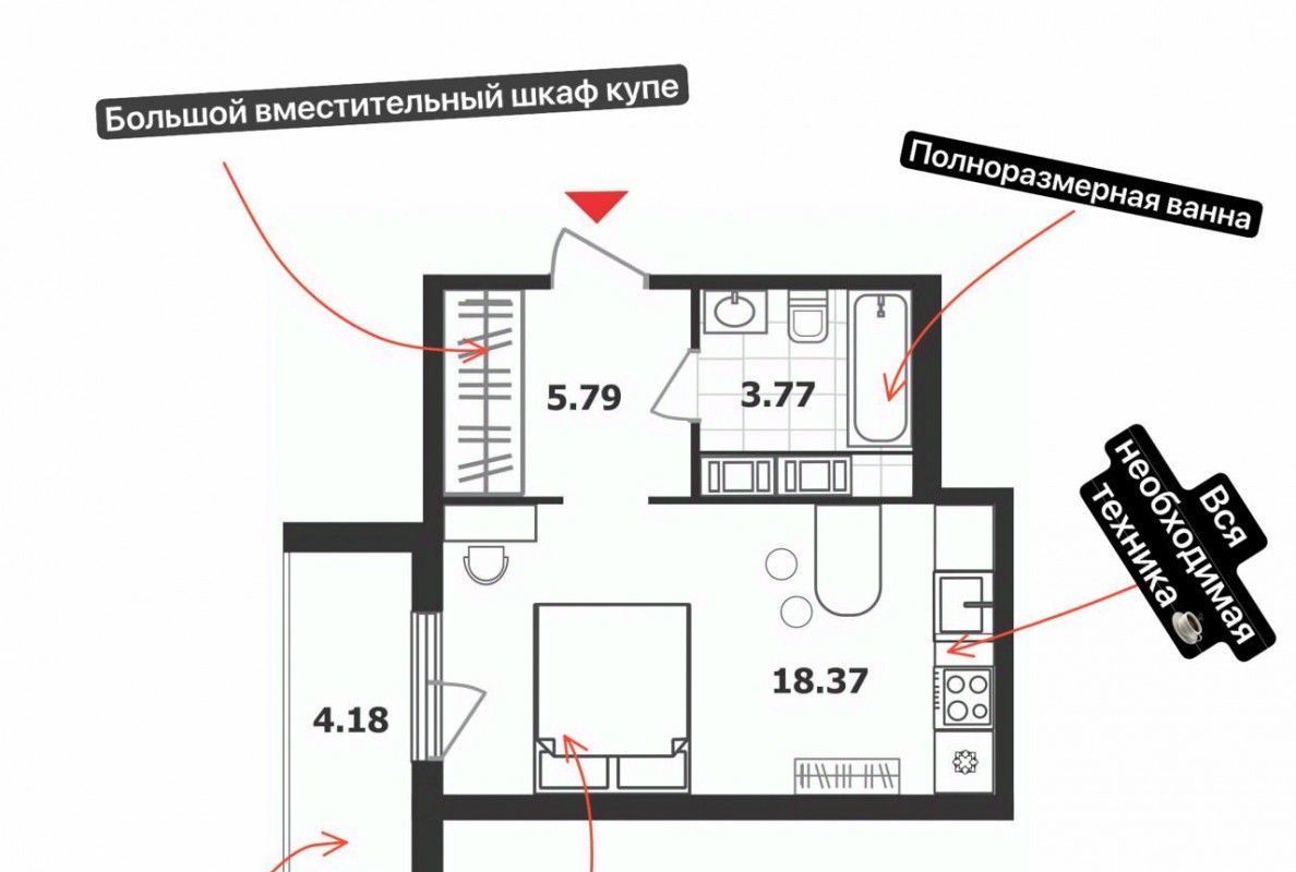 Студия Санкт-Петербург аллея Арцеуловская, 23к1 (27.7 м²)