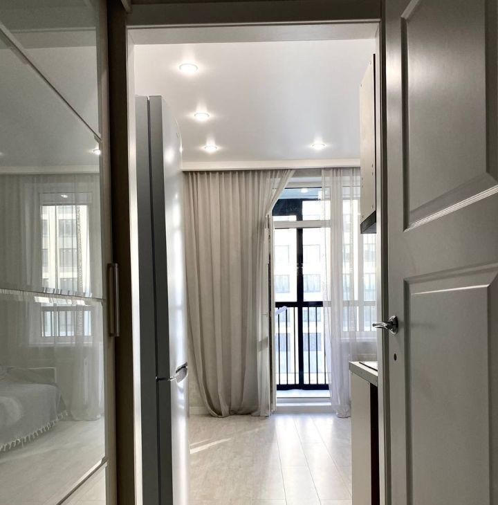 В квартире есть все необходимое для комфортного проживания: кухонная зона, холодильник а так же большой и удобный диван. Планировка продумана до мелочей: удобный большой шкаф, а также совмещенный санузел.