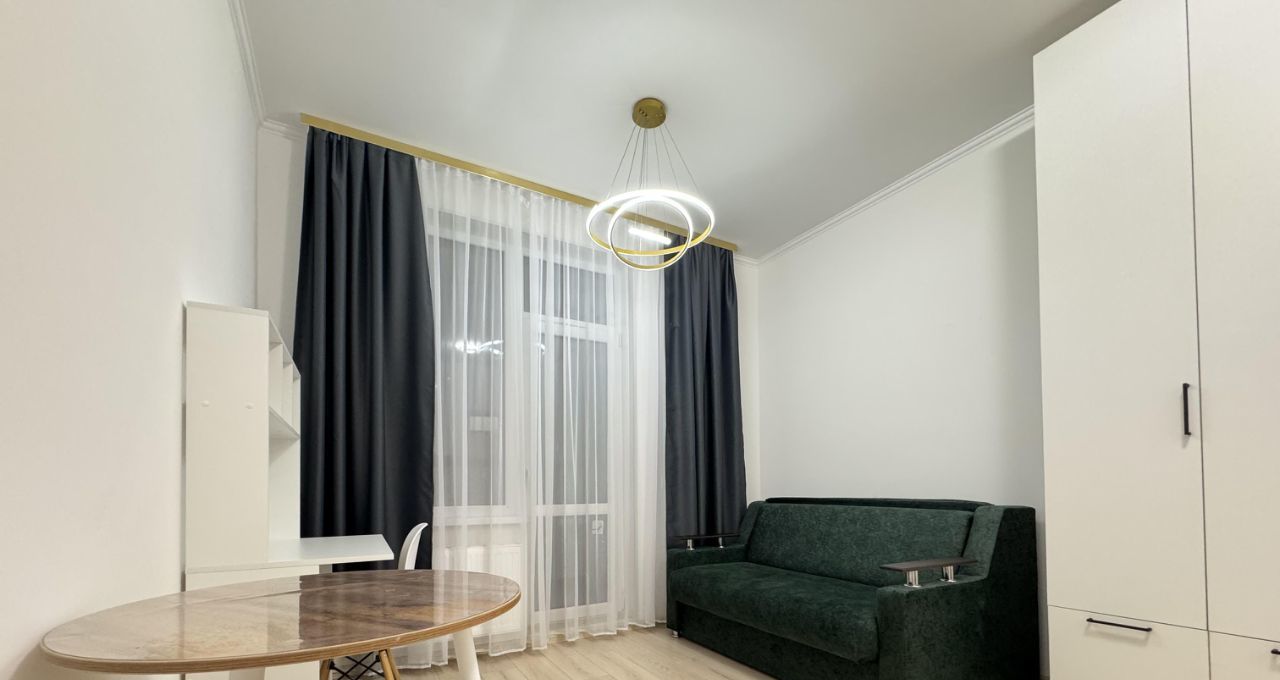 Открытая планировка, которая объединяет гостиную, кухню и спальную зону. Современно оборудованная кухня с наличием кухонной техники и оборудования.