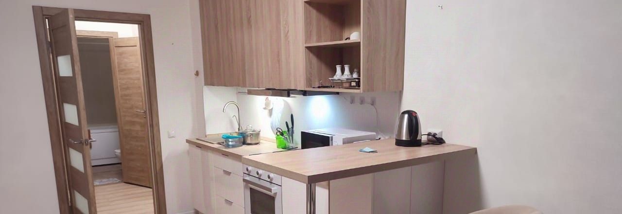 Компактная квартира в новом доме. Вблизи дома находится всё необходимое для удобного проживания: супермаркеты, аптеки, бар, кафе, парикмахерские, салоны красоты, сбербанк и другие банки, мастерские мелкого ремонта и т.д. В 10-ти минутах езды гипермаркет "ЛЕНТА" с круглосуточным режимом работы.