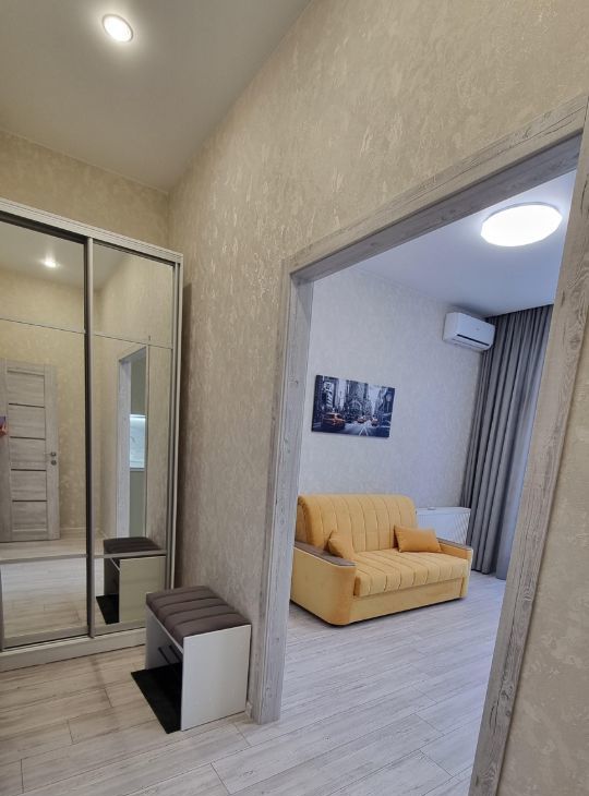 В квартире сделан качественный ремонт. Оборудована всем необходимым для комфортной жизни. Установлен кондиционер, теплый пол в зоне кухни. Панорамные окна, дают много света, и придают особый шарм!