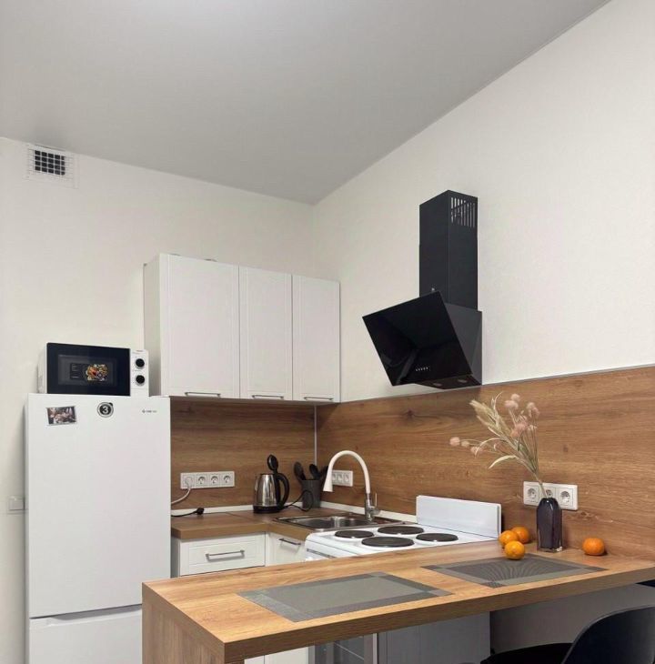 Новый современный ремонт. Есть вся необходимая новая мебель и техника : Кухонная мебель, эл.плита, вытяжка, электрический чайник, холодильник, стиральная машина, утюг, ортопедический диван, телевизор.