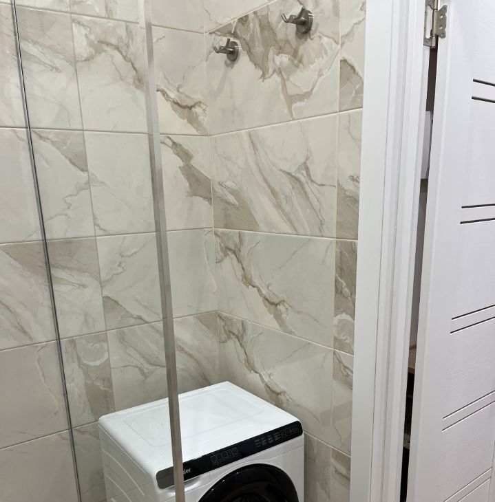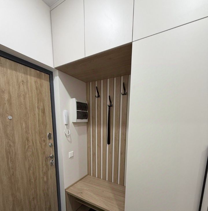 - Вместительное хранение: два больших шкафа (в прихожей и комнате), шкаф в ванной