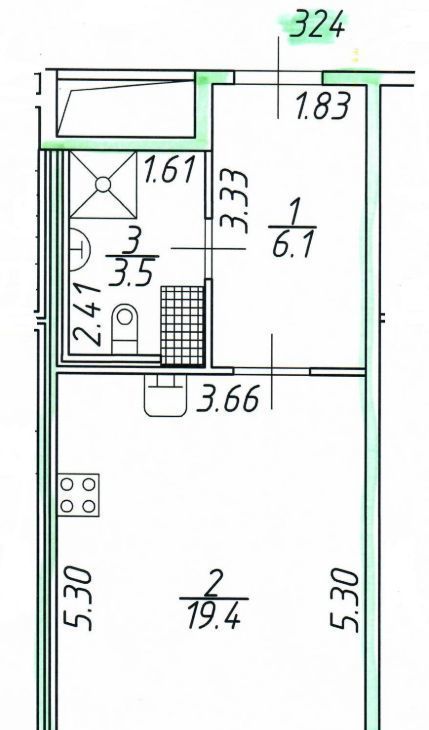 Студия Санкт-Петербург Богатырский просп., 2А (29.0 м²)