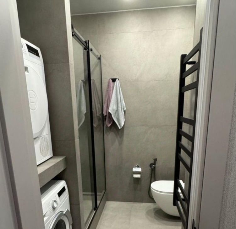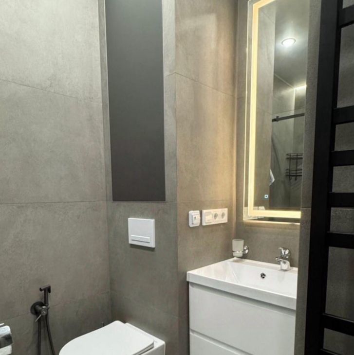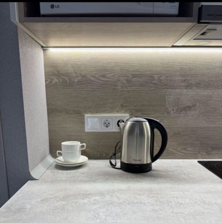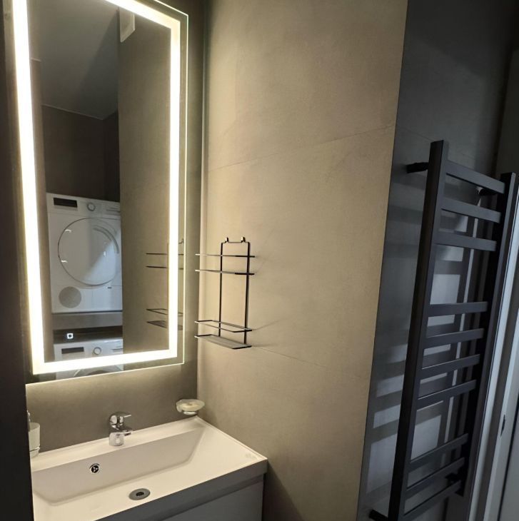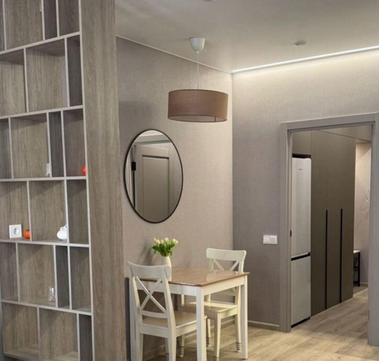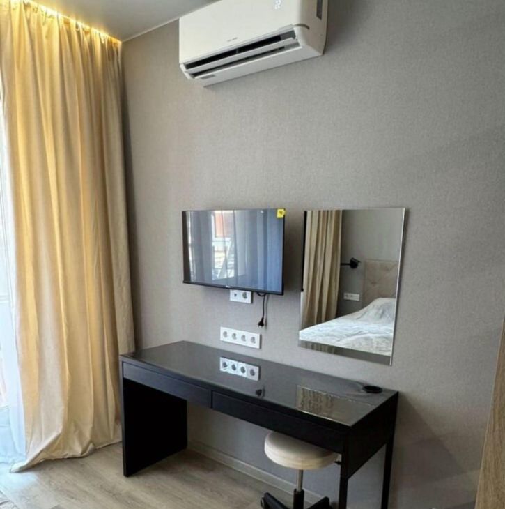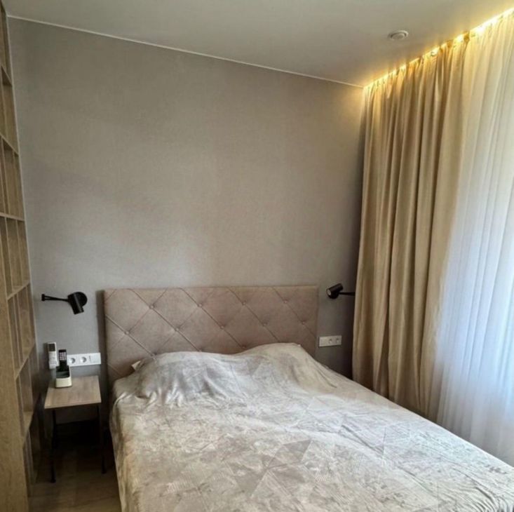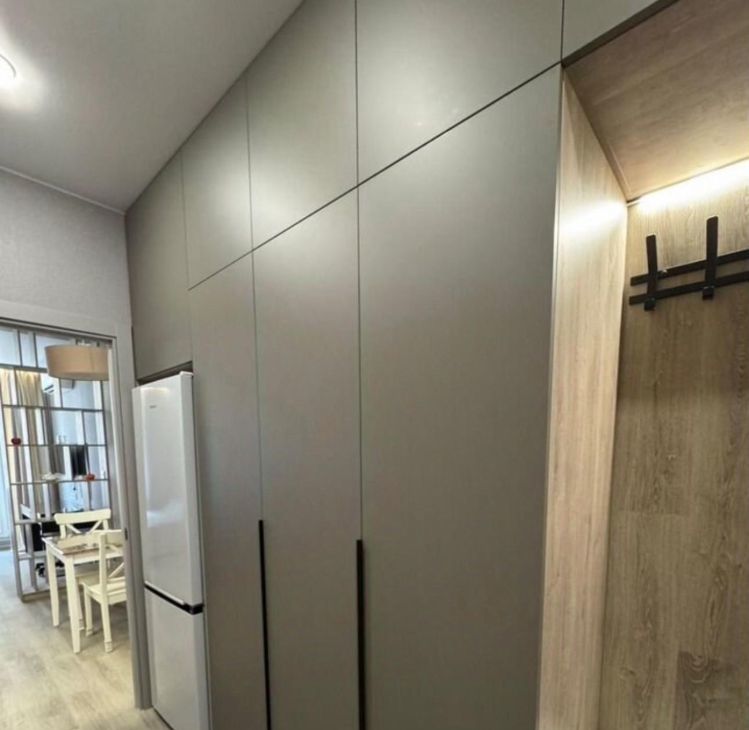 Квартира сдается с полной отделкой и меблировкой. Полностью переделана электрика, при входе сделан мастер выключатель, отключающий подсветку сразу во всей квартире. В коридоре расположен очень большой шкаф, в который без труда поместятся все ваши вещи. Также в коридоре установлен новый тихий холодильник Hisense. Коридор отделен от комнаты отдельной дверью, чтобы звук холодильника вам не мешал. Ванная комната отделана плиткой под камень. В ней смонтирована душевая кабина с тропическим душем, установлены стиральная и сушильная машины BOSCH, инсталляция с гигиеническим душем и раковина с зеркалом и подсветкой. Во всей ванной смонтирован теплый пол. Также в ванной и под раковиной в кухне установлены датчики протечки Аквастоп - при попадании на них воды, вода в квартире автоматически перекрывается. В жилой комнате сделано зонирование с помощью стеллажей на две зоны. Зона кухни - в ней смонтирована сама кухня с электрической варочной поверхностью, микроволновой плитой, вытяжкой, раковиной со смесителем и сушилкой для посуды. Также в этой части комнаты установлен диван (раскладывается в кровать) и столик со стульями. Вторая часть комнаты - зона спальни. В ней установлена кровать 160*200см с матрасом, туалетный столик Икея с креслом, телевизор с wifi и кондиционер. В комнате сделано много разных зон освещения - от яркого потолочного, до скрытого контурного, если вы хотите расслабиться перед сном. На балконе установлен стеллаж Икея для хранения и садовое кресло.