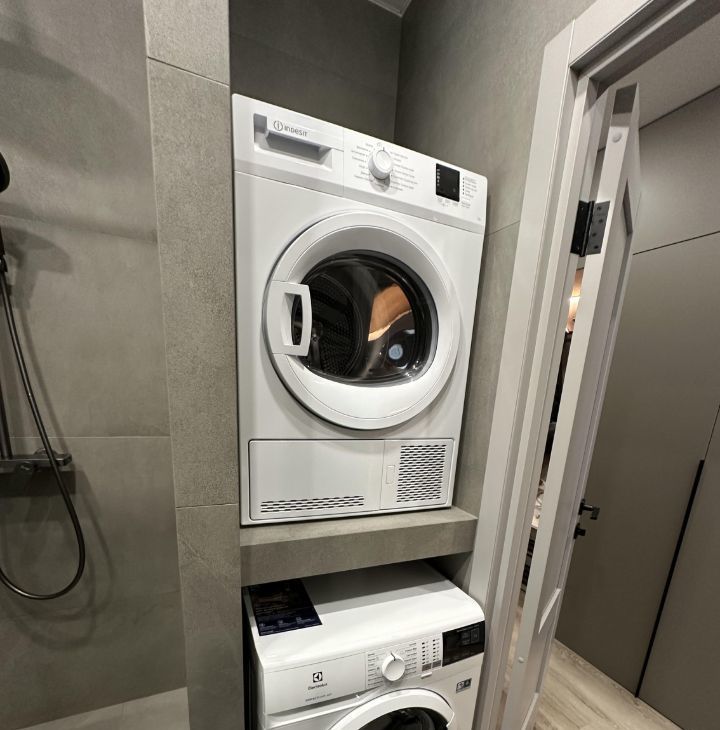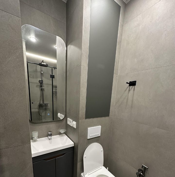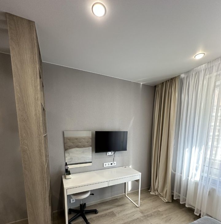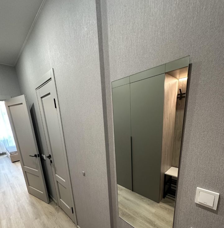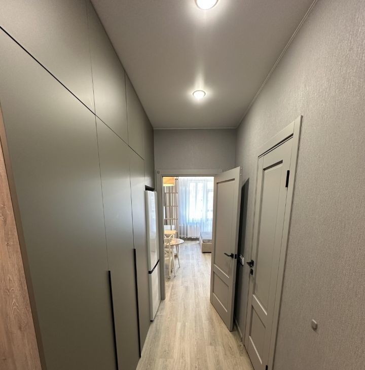 Квартира сдается с полной отделкой и меблировкой. Полностью переделана электрика, при входе сделан мастер выключатель, отключающий подсветку сразу во всей квартире. в коридоре расположен очень большой шкаф, в который без труда поместятся все ваши вещи. Также в коридоре установлен новый тихий холодильник Hisense. Коридор отделен от комнаты отдельной дверью, чтобы звук холодильника вам не мешал. Ванная комната отделана плиткой под камень. В ней смонтирована душевая кабина с тропическим душем, установлены стиральная и сушильная машины (вам больше не потребуется гладильная доска - вещи из сушильной машины можно складывать сразу в шкаф), инсталляция с гигиеническим душем, раковина с зеркалом и подсветкой. также в ванной установлен теплый пол. В ванной и на кухне установлена система Аквастоп - при попадании влаги на датчики на полу, вода в квартире автоматически перекрывается.