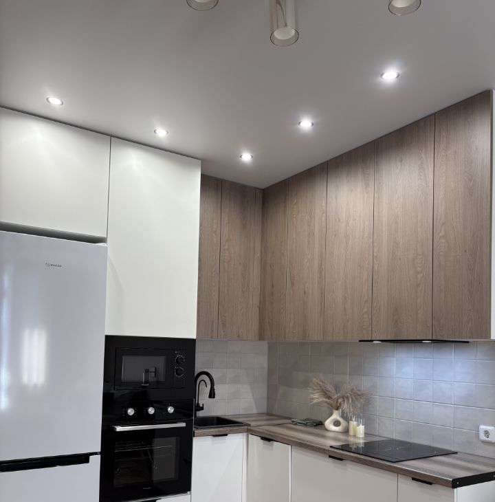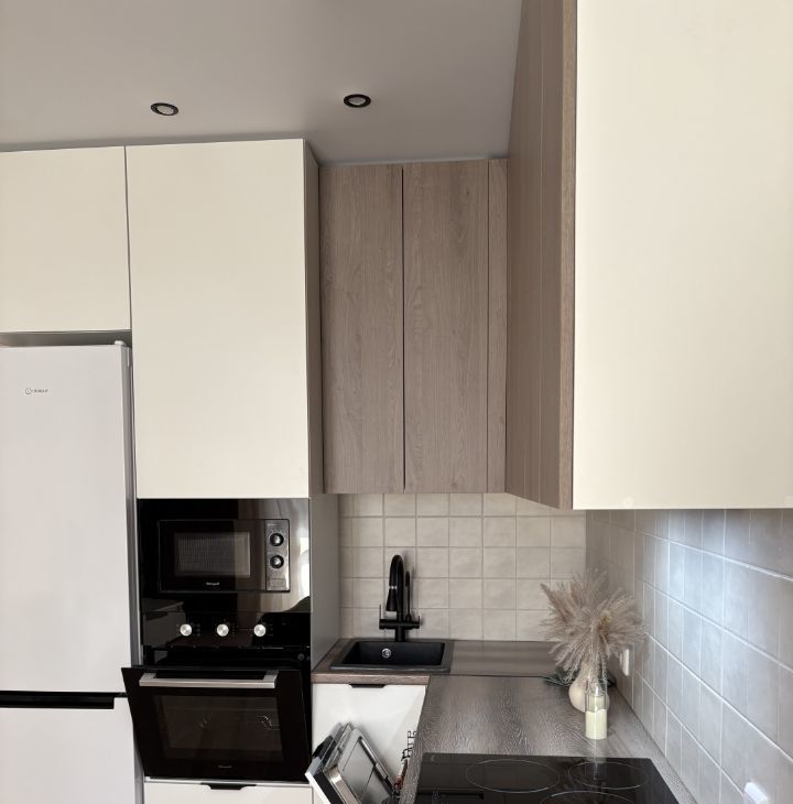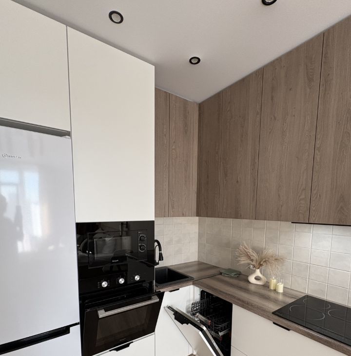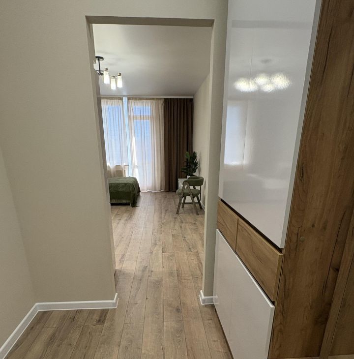 В квартире выполнен качественный евроремонт. Пространство студии грамотно организовано, что позволяет максимально эффективно использовать каждый квадратный метр. Кухня выполнена на заказ по индивидуальным размерам и оборудована всей необходимой техникой: холодильник,посудомоечная машина,варочная панель, вытяжка, встроенная микроволновая печь, духовой шкаф, фильтр для воды. Предусмотрены различные сценарии освещения . В квартире есть лоджия, где можно обустроить зону отдыха или использовать для хранения.