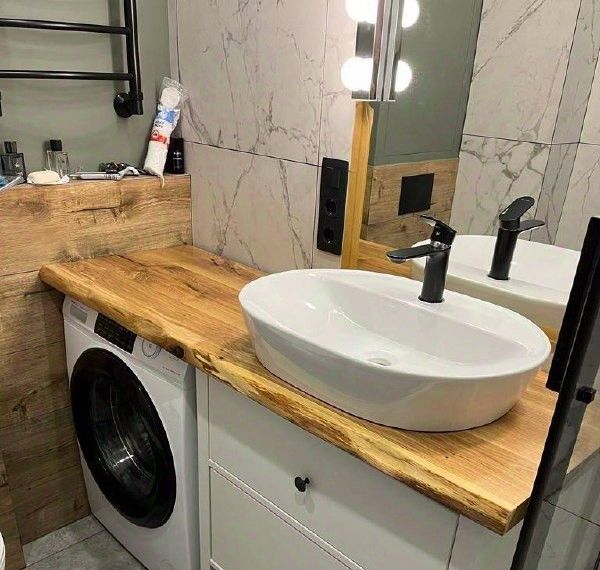 Ванная комната - отделка крупноформатным керамогранитом под мрамор и качественная сантехника чёрного матового цвета. Стиральная машина. Гигиенический душ. Водонагреватель.