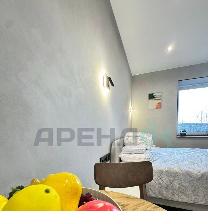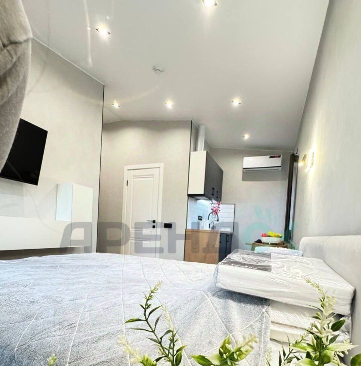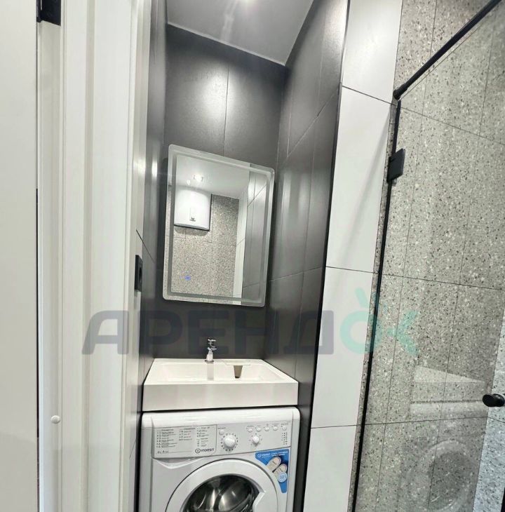 Внутри вас ждет современная кухня с качественной техникой, включая холодильник, электроплиту и микроволновку. Для вашего удобства также имеется стиральная машина. Интерьер выполнен в теплых тонах с акцентом на натуральные материалы, создавая уютную атмосферу.