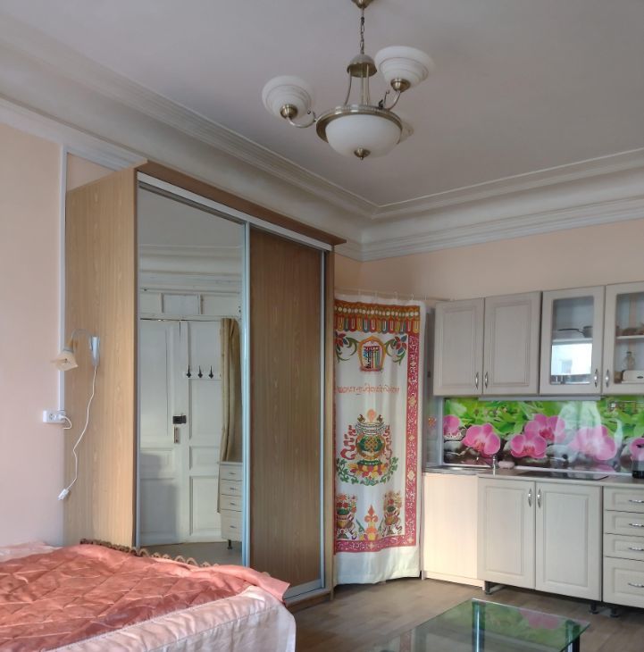 59/61, сдаётся (только одной девушке) на длительный срок просторная студия 20 метров, 2 больших окна.
