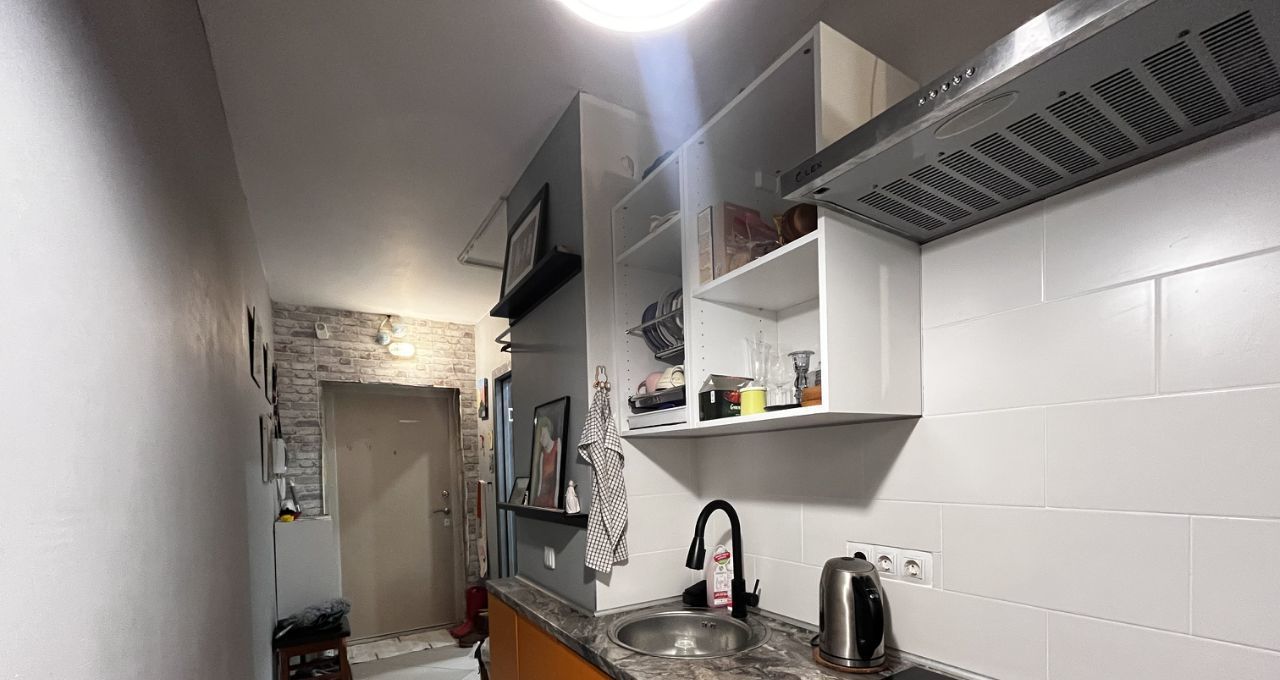 Кухня изолирована от зоны сна и отдыха, располагается в коридоре