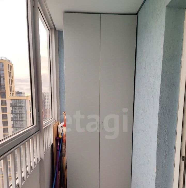 Кухонная зона с полноценной плитой, обеденная зона, раскладной диван. Просторная лоджия.