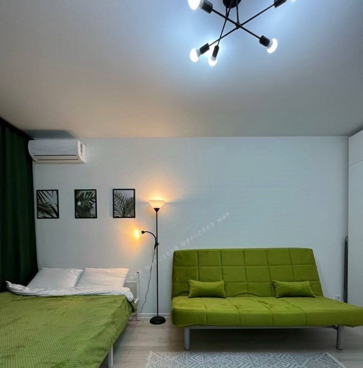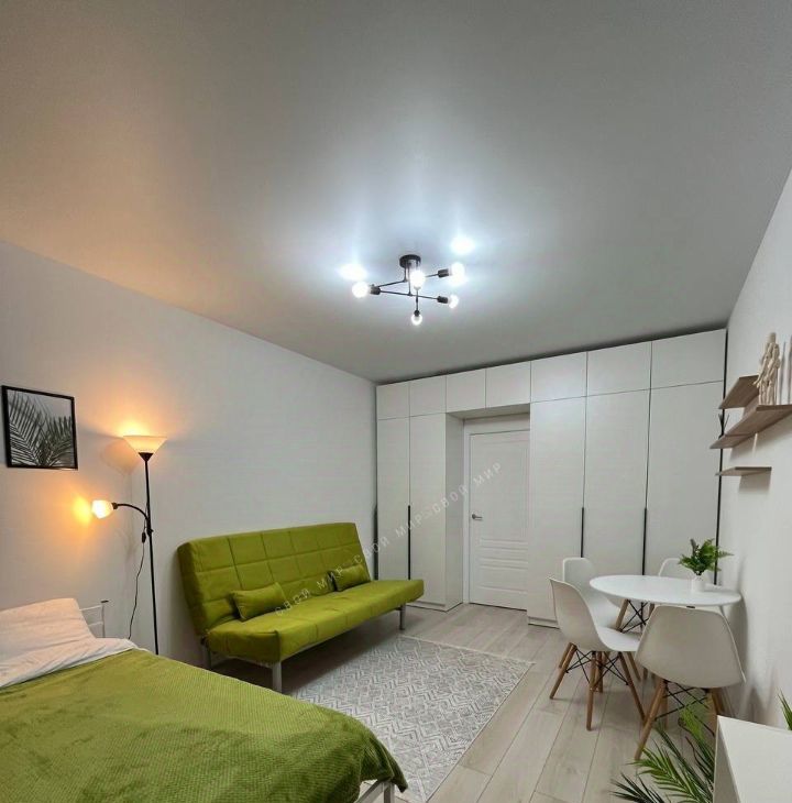 Квартира очень светлая и уютная. Очень необычная планировка для студии. Кухня вынесена в коридор, тем самым все запахи от приготовления пищи не будут попадать в пространство спальни. В квартире есть все для комфортной жизни. Заезжай и живи!