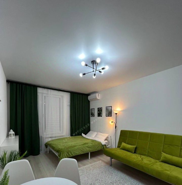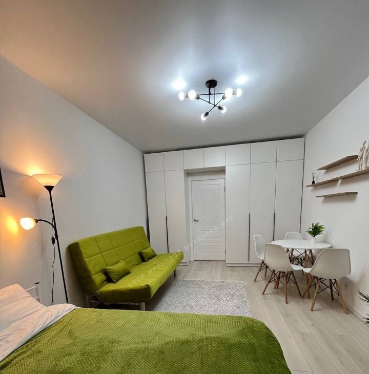 Квартира очень светлая и уютная. Очень необычная планировка для студии. Кухня вынесена в коридор, тем самым все запахи от приготовления пищи не будут попадать в пространство спальни. В квартире есть все для комфортной жизни. Заезжай и живи!