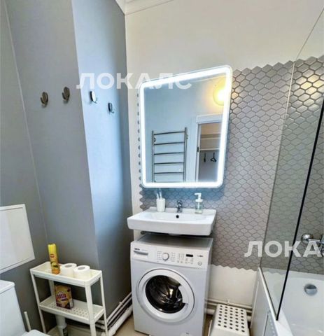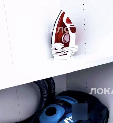 В комнате установлен умный потолочный светильник. Вы можете самостоятельно выбрать цветовую температуру и яркость свечения. Для создания локальной подсветки, используйте дополнительный торшер. Установлена стиральная машина, фен, утюг, гладильная доска и сушилка для одежды. В прихожей имеется гардеробная зона, в комнате платяной шкаф.