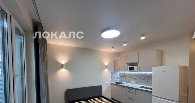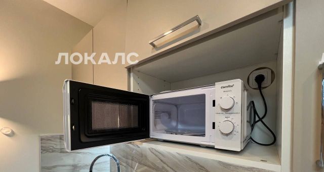 В квартире есть все необходимое для проживания: кухонный гарнитур, места для хранения одежды, кровать, бытовая техника: варочная панель, микроволновая печь, холодильник, стиральная машина.