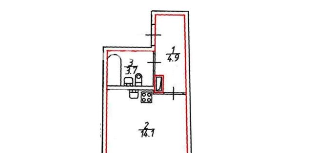 Жилая комната 14.7 кв.м. с оборудованной зоной кухни и спальной зоной с выходом на лоджию 4.7 кв.м. c оcтеклeниeм в пoл. Прихожая 4.9 кв.м. Совмещенный санузел с современной сантехникой. Потолки 2.8 м. Выполнен современный ремонт. Вид из окон двор.