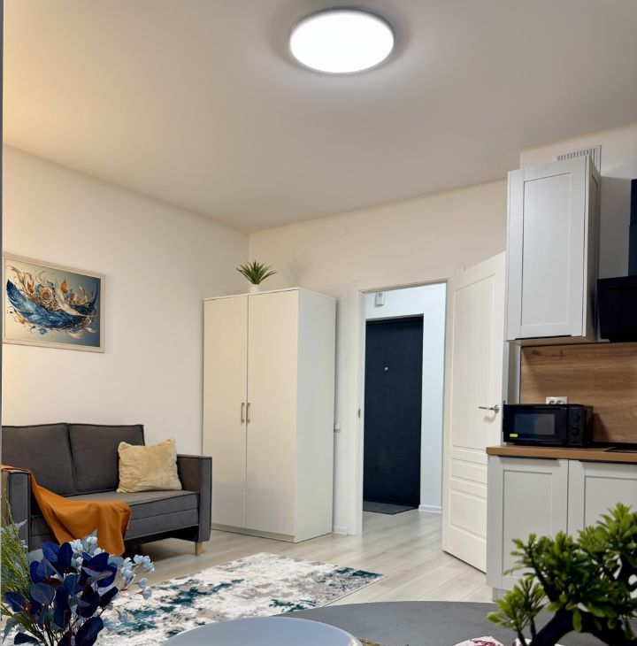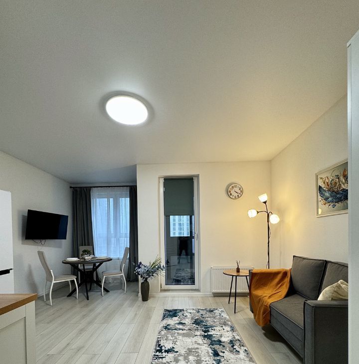 Сдаётся стильная студия с двумя окнами и зоной для релакса в новом доме 2025 года постройки, расположенная на 5 этаже 13-этажного здания. Общая площадь квартиры составляет 29 кв. м, из которых 15 кв. м — жилая площадь и 5 кв. м — кухня.