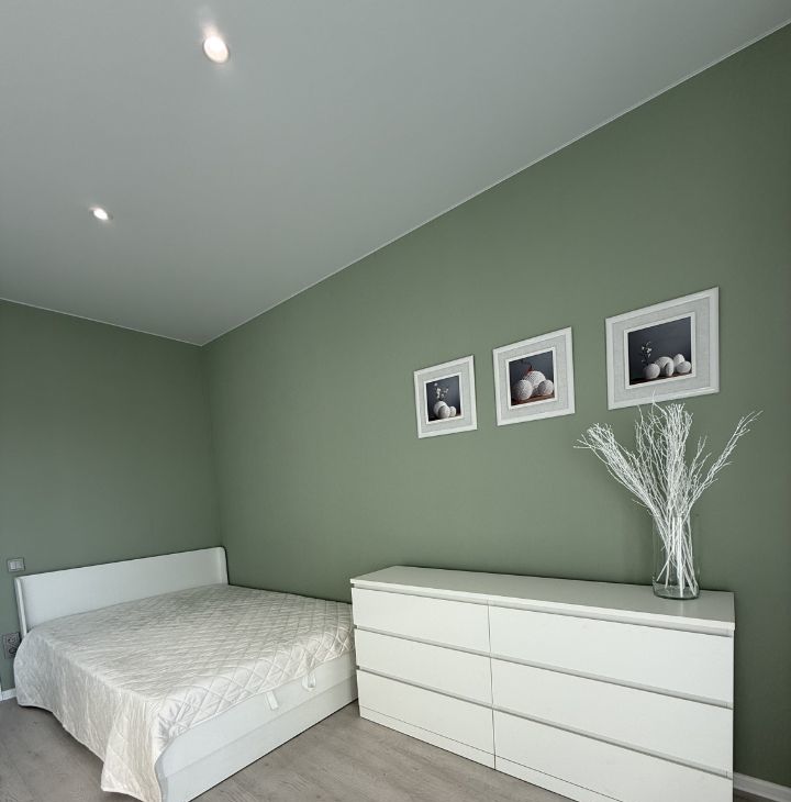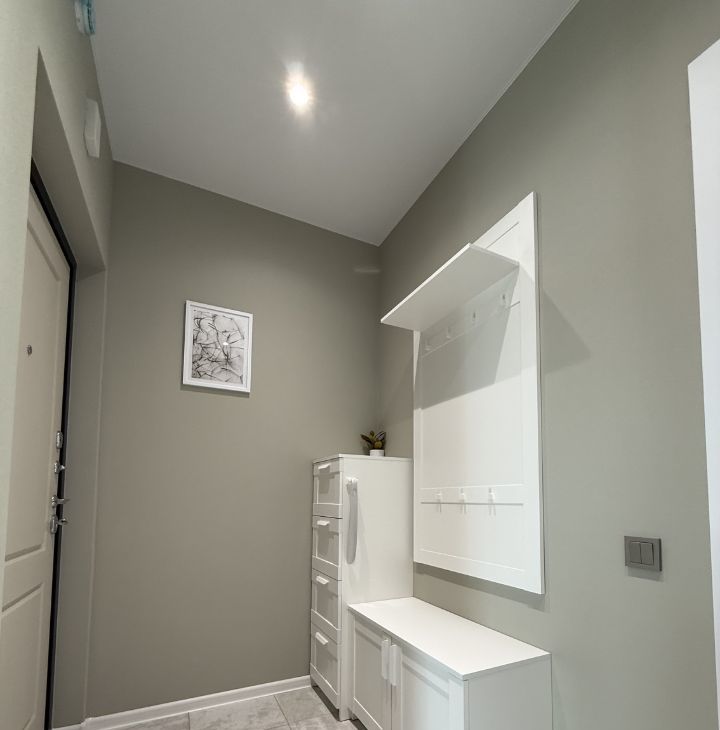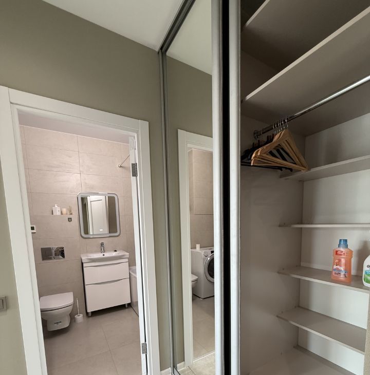 В комнате вместительный комод Хорошая новая двуспальная кровать с подъемным механизмом и новым комфортным матрасом орматекс. В коридоре большой шкаф купе . В санузле пол с подогревом.