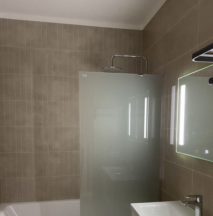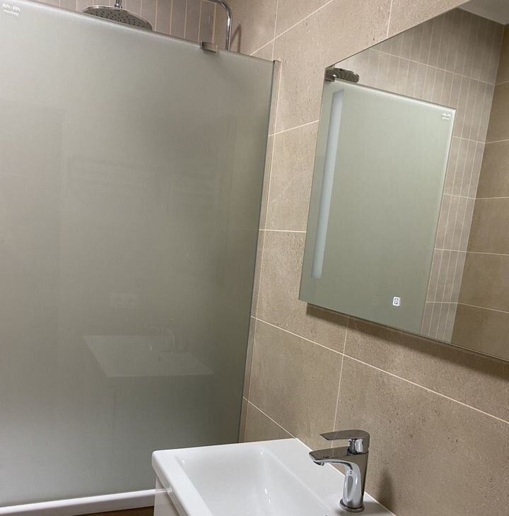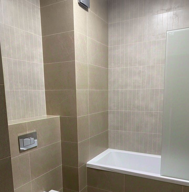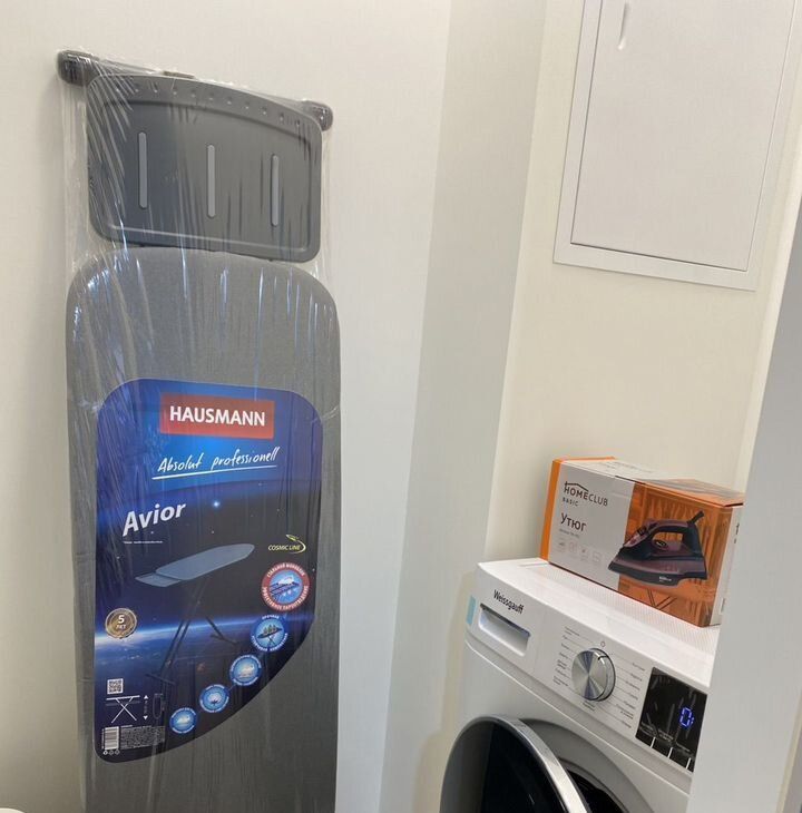 Ванная комната (совмещенный санузел) , также укомплектована современной сантехникой и мебелью , водонагревателем. Стиральная машина с сушкой имеет 15 программ , инвертор, пар , установлена в отдельной зоне кухни.