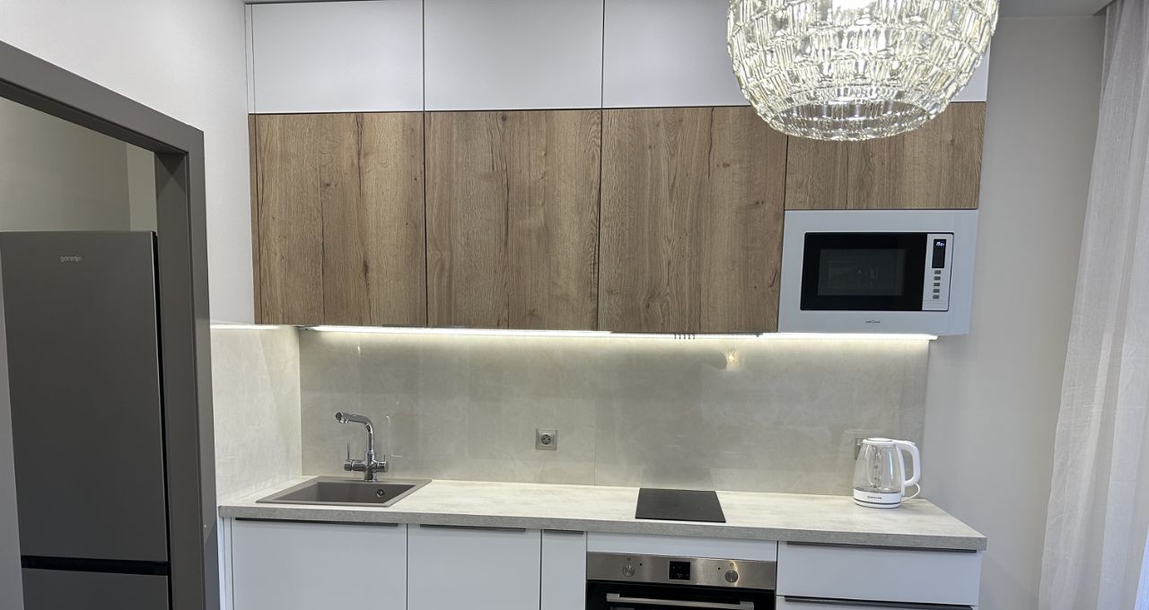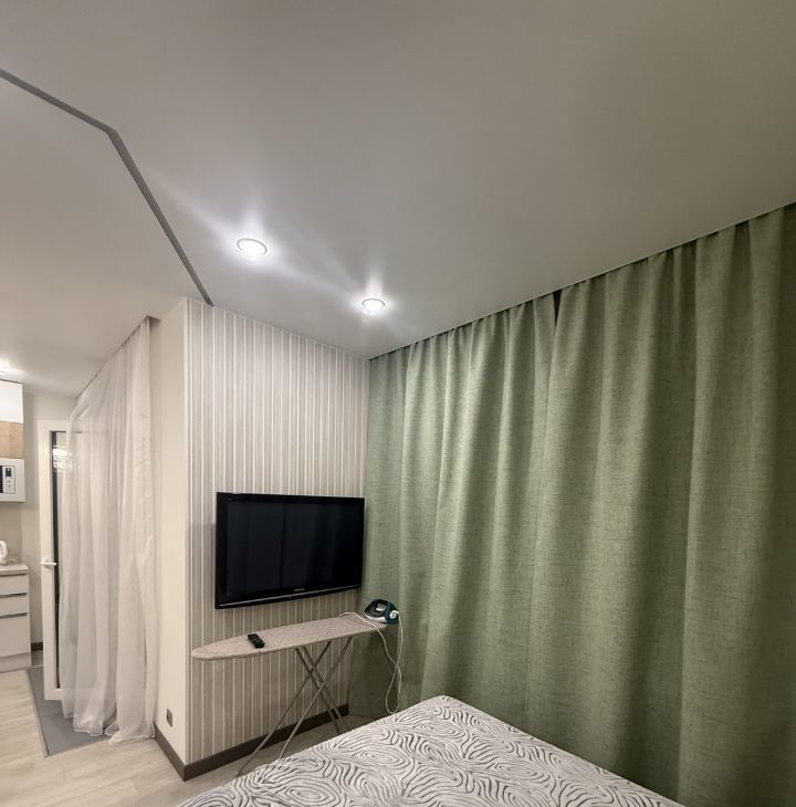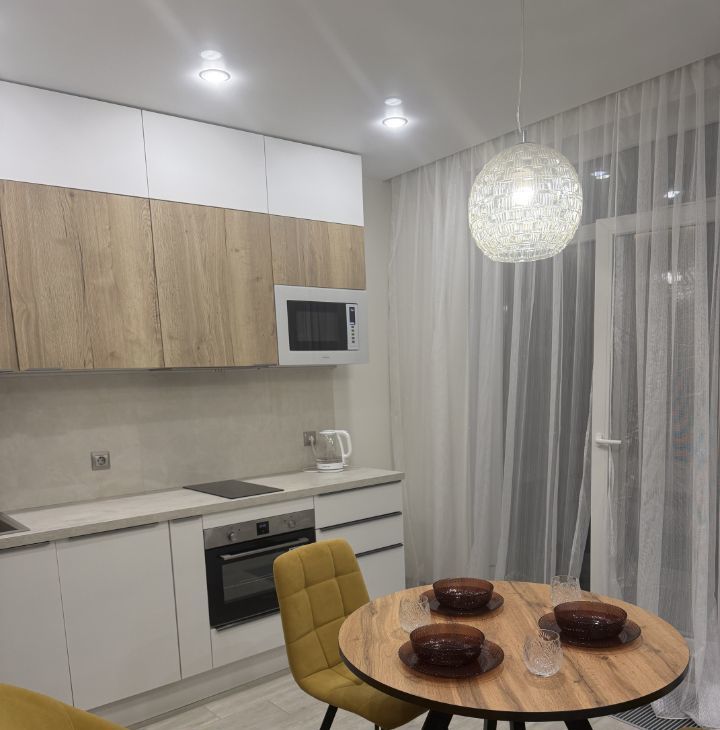 Сдается с 1 февраля стильная студия с дизайнерским ремонтом в монолитном доме 2023 года постройки. Квартира оборудована всем необходимым: холодильник, варочная панель, микроволновая печь и посудомоечная машина. В зоне отдыха установлен телевизор, шкаф и двуспальная кровать с отличным матрасом.