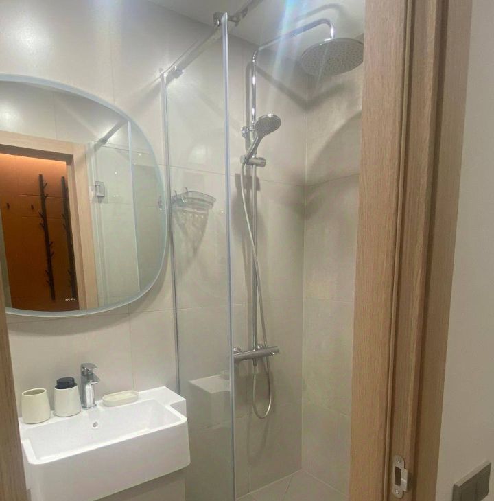 Собственный санузел с душем и туалетом. Утюг и фен.Стиральной машинки нет.