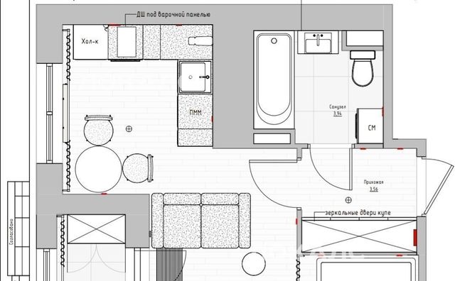 Возможно дополнительная мебелировка и приобретение предметов интерьера для Вашего удобства - обустройство рабочего места или туалетного столика, комода под телевизор.