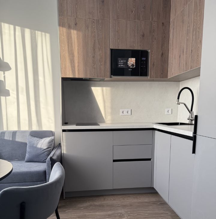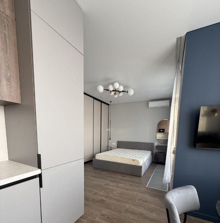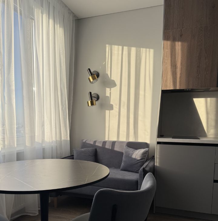 видовая однокомнатная квартира студия . площадь 32 кв метра. в квартире никто не жил