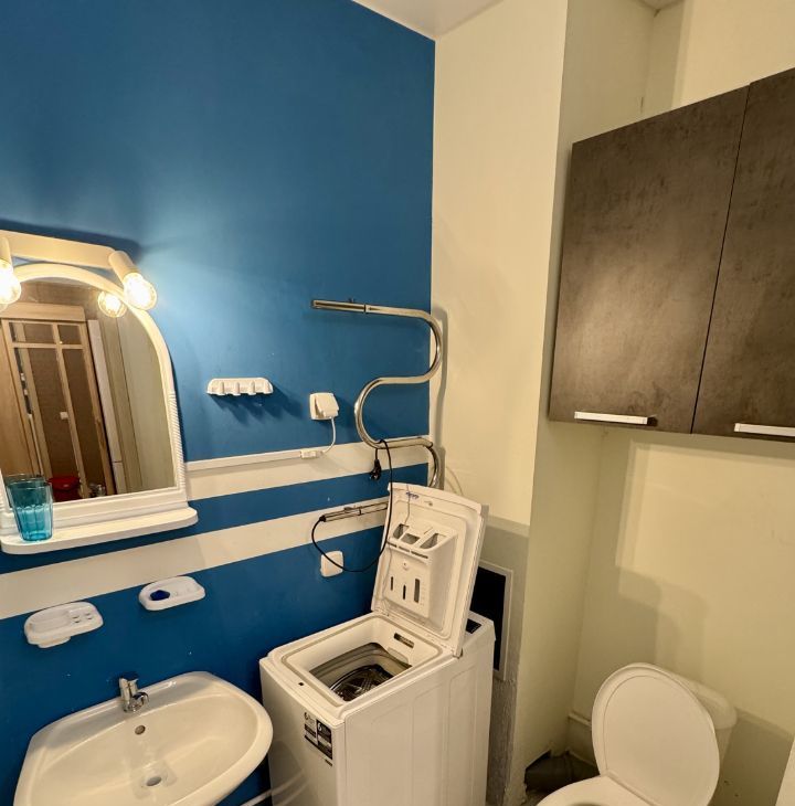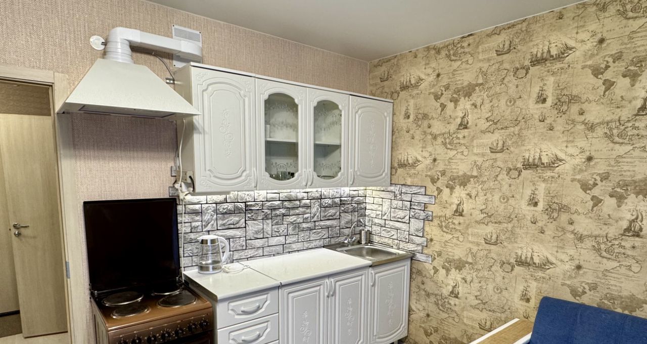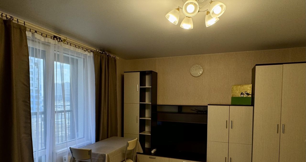 Пространство студии функционально обустроено: есть мебель, кухонный гарнитур, посуда, постельные принадлежности. Из техники — холодильник, чайник, электрическая плита, телевизор, утюг и стиральная машина. Ванная комната оснащена полноценной ванной. Также имеется просторная лоджия.