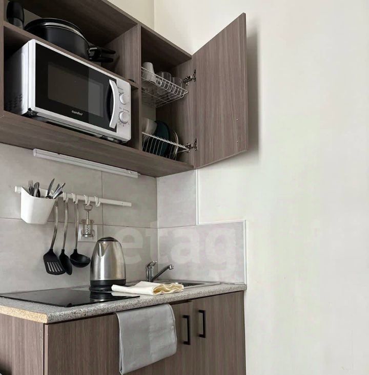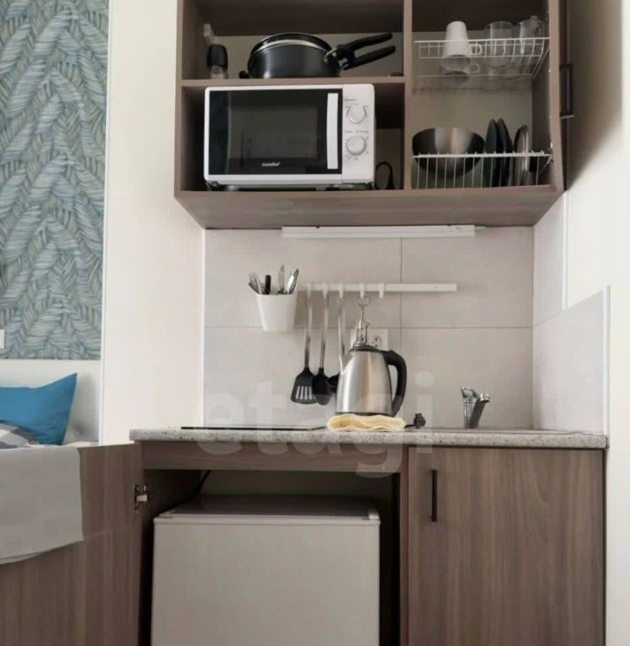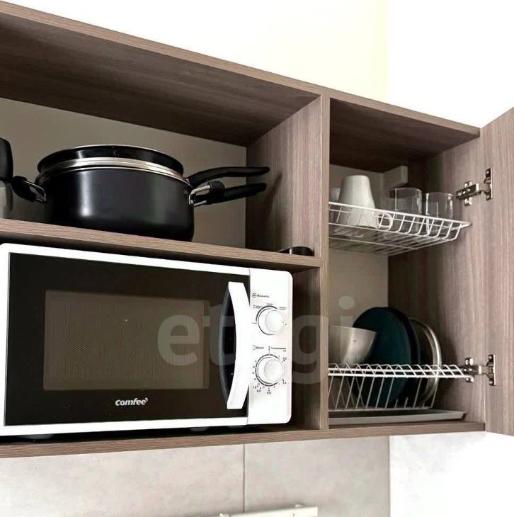 В квартире есть все для комфортного проживания: кровать, кухонный гарнитур, посуда, постельное белье, стол со стульями, техника.