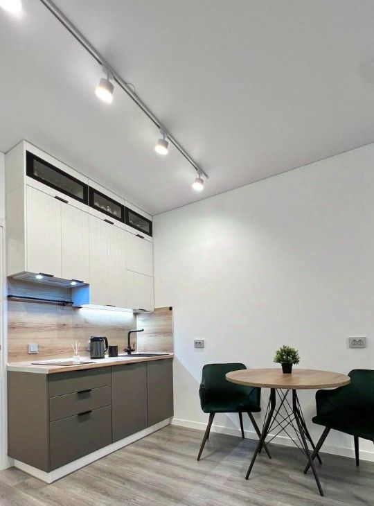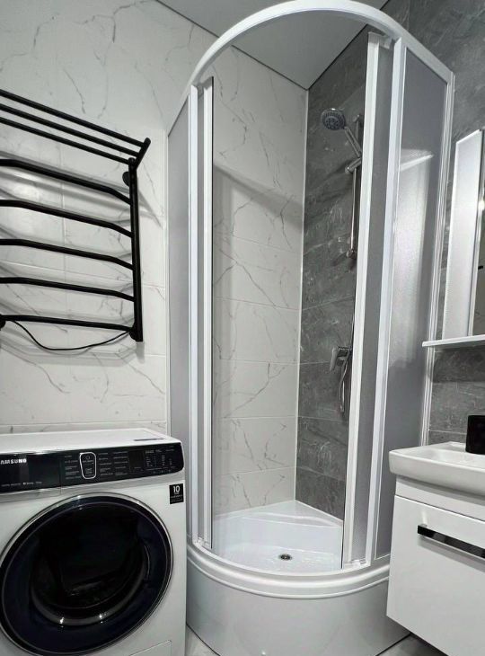 Квартира полностью готова для комфортного проживания. Внутри выполнен современный ремонт. Студия оборудована всей необходимой техникой: холодильником, посудомоечной машиной и телевизором, варочной панелью, духовым шкафом, микроволновкой, чайником, утюгом, стиральной машиной, беспроводным пылесосом. Санузел совмещенный, оборудован душевой кабиной.