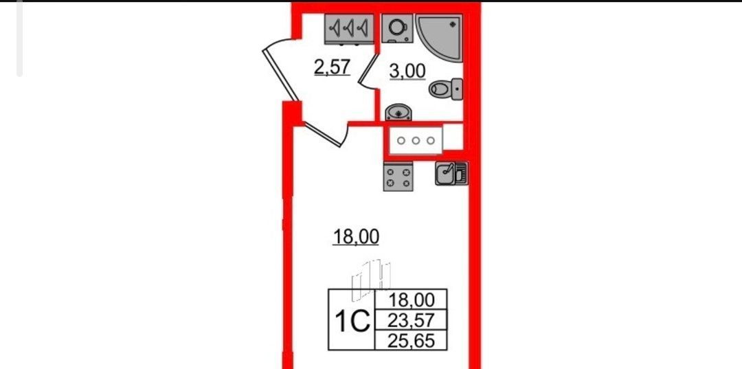 Студия Санкт-Петербург Дальневосточный просп., 23 (23.57 м²)