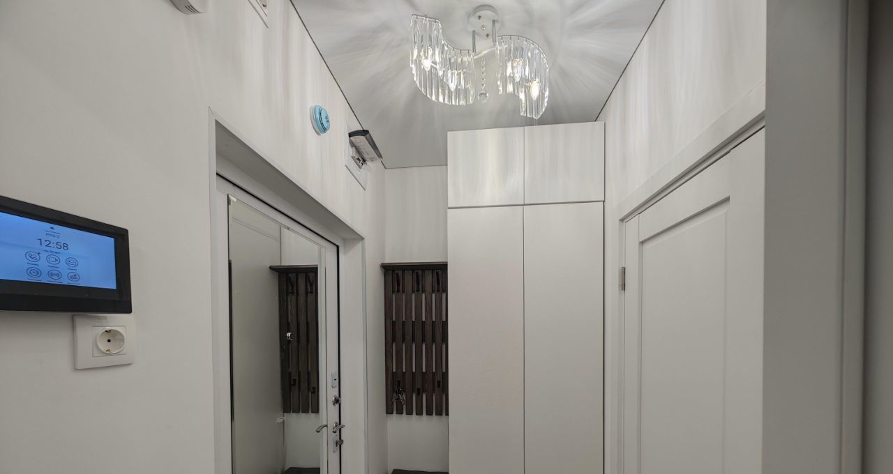- полы кварцвинил, потолки натяжные, в ванной тёплый пол.