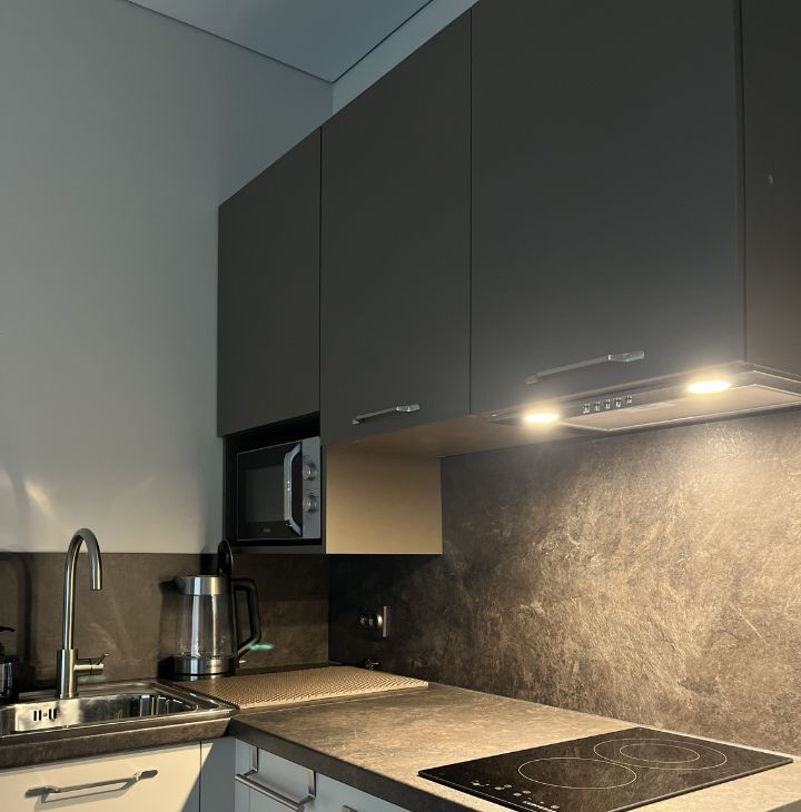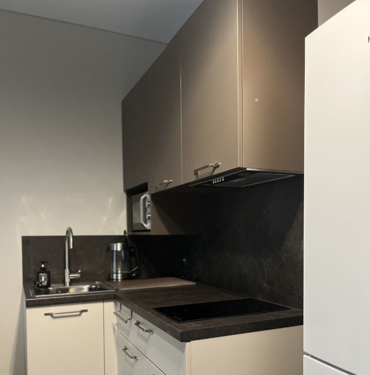 Варочная поверхность, микроволновая печь, вытяжка, стиральная машина, чайник, гладильная доска, утюг, сушилка, набор посуды - все готово - въезжай и живи.