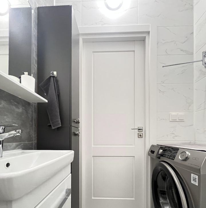 Ремонт выполнен в спокойных приглушенных тонах - пространство выглядит аккуратно, современно.