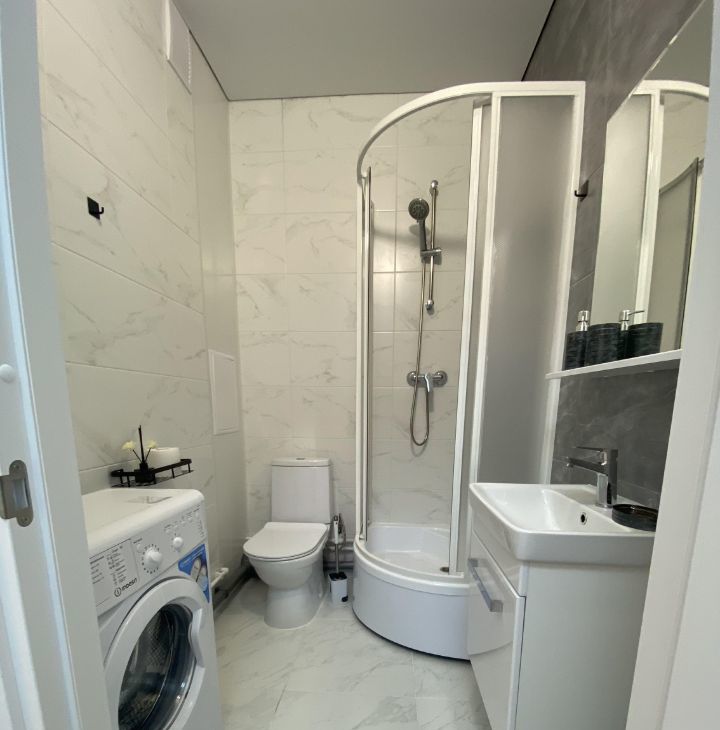 В квартире сделан евроремонт. Обстановка включает необходимую мебель как на кухне, так и в комнате, что позволяет сразу заселиться. Из техники в вашем распоряжении будут холодильник и стиральная машина, микроволновка, чайник. Ванная комната оборудована душевой кабиной и стиральной машиной.
