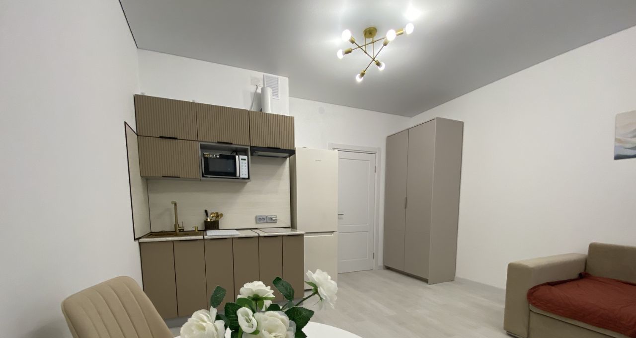 Сдается уютная студия в новом доме 2025 года постройки. Квартира расположена на 3 этаже 15-этажного здания. Общая площадь составляет 25 кв.м, высота потолков — 2.7 метра. Окна выходят на улицу, что обеспечивает естественное освещение в течение дня.