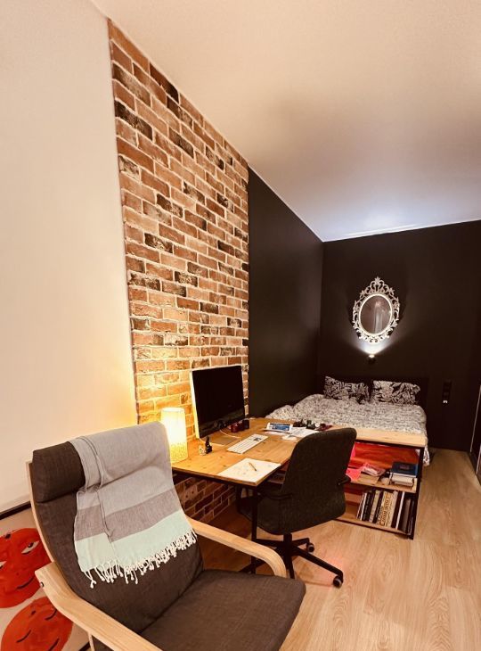 Рабочее место: удобный стол, комфортное кресло, стабильный Wi-Fi — можно спокойно работать или учиться.