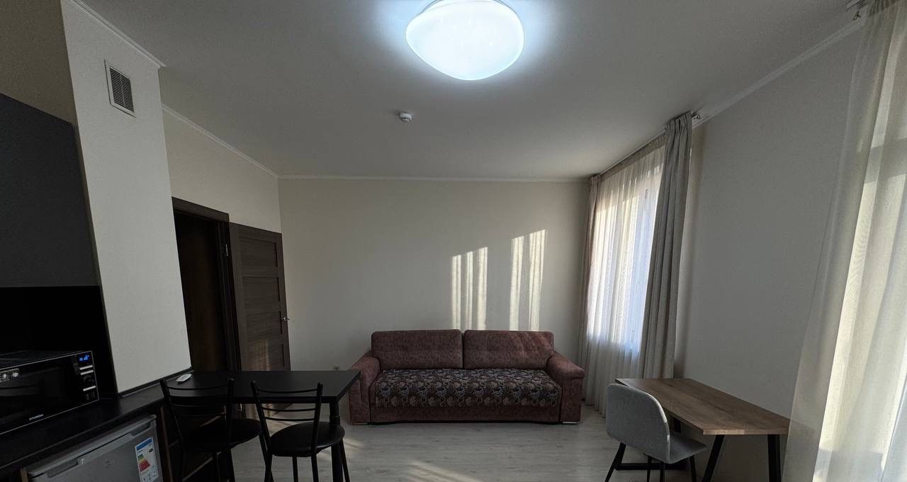 Сдаётся стильная студия с дизайнерским ремонтом в современном доме, построенном в 2019 году. Квартира площадью 27 кв. м . Высота потолков составляет 2.7 метра, что придаёт пространству лёгкость и воздушность.