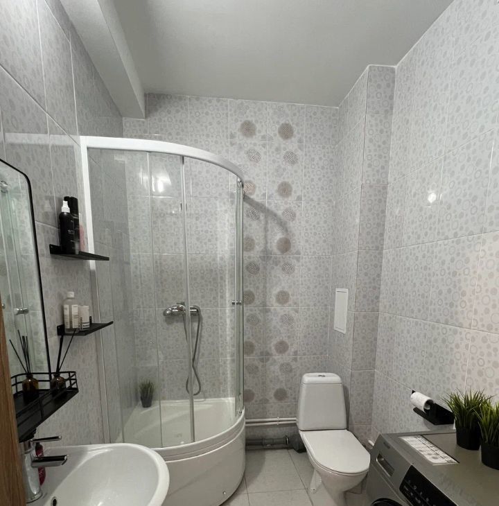 Квартира полностью готова к проживанию: современный ремонт в серых оттенках, мебель остается.