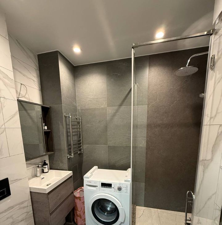 В санузле сделан свежий дизайнерский ремонт с заменой всех коммуникации, счетчиков и труб. Просторная душевая кабина и керамогранит. Стиральная машина.