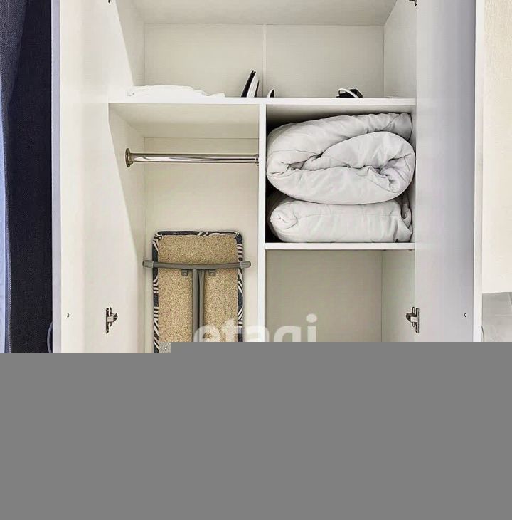 -гладильная доска, утюг, и встроенная сушка в ванной