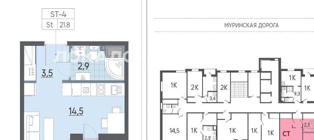 Студия Санкт-Петербург дор. Муринская, 8к2 (22.0 м²)