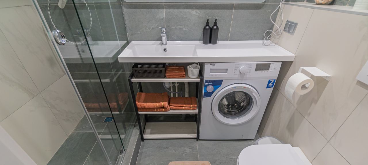 - Сан.узел (душевая кабина, туалет, стиральная машинка, сушилка, фен)