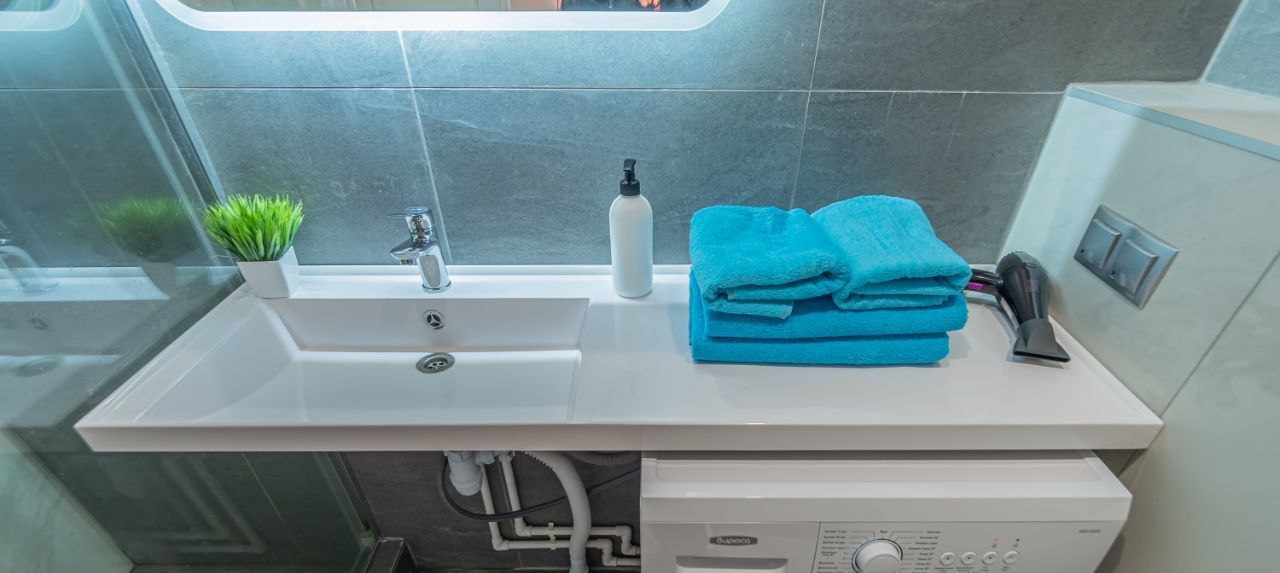 - Сан.узел (душевая кабина, туалет, стиральная машинка, сушилка, фен)