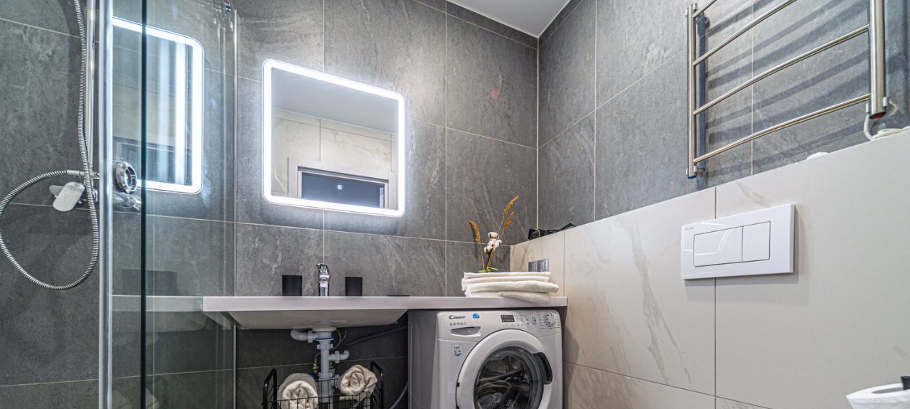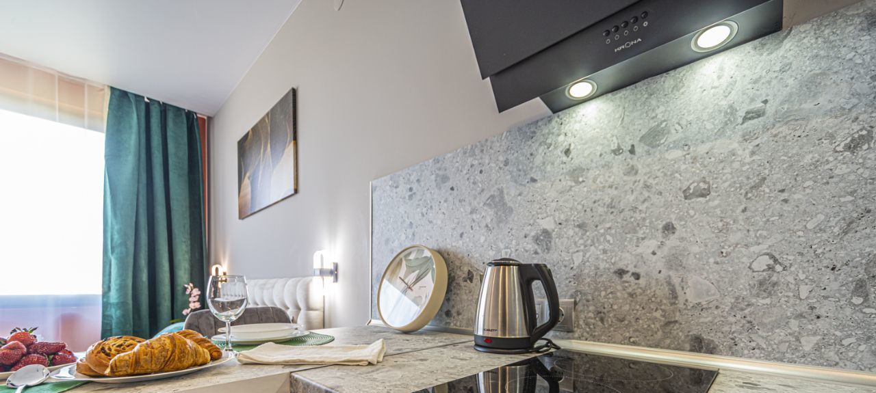 Есть всё для жизни: от кастрюль до 55-дюймового телевизора. Техника свежая, мебель удобная. Wi-Fi подключен.