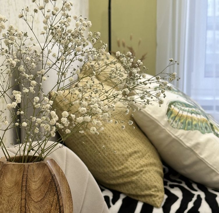 В квартире есть живые растения, а из окна можно наблюдать невероятные закаты!